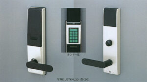 使うたびに数字の配列が変わるテンキーロックです。指の跡が同じ位置に残らないので暗証番号が知られる危険性を回避できます。電池長持ち(1日10回操作で3年)。非常キー付属。自動施錠タイプもあります。取付費別